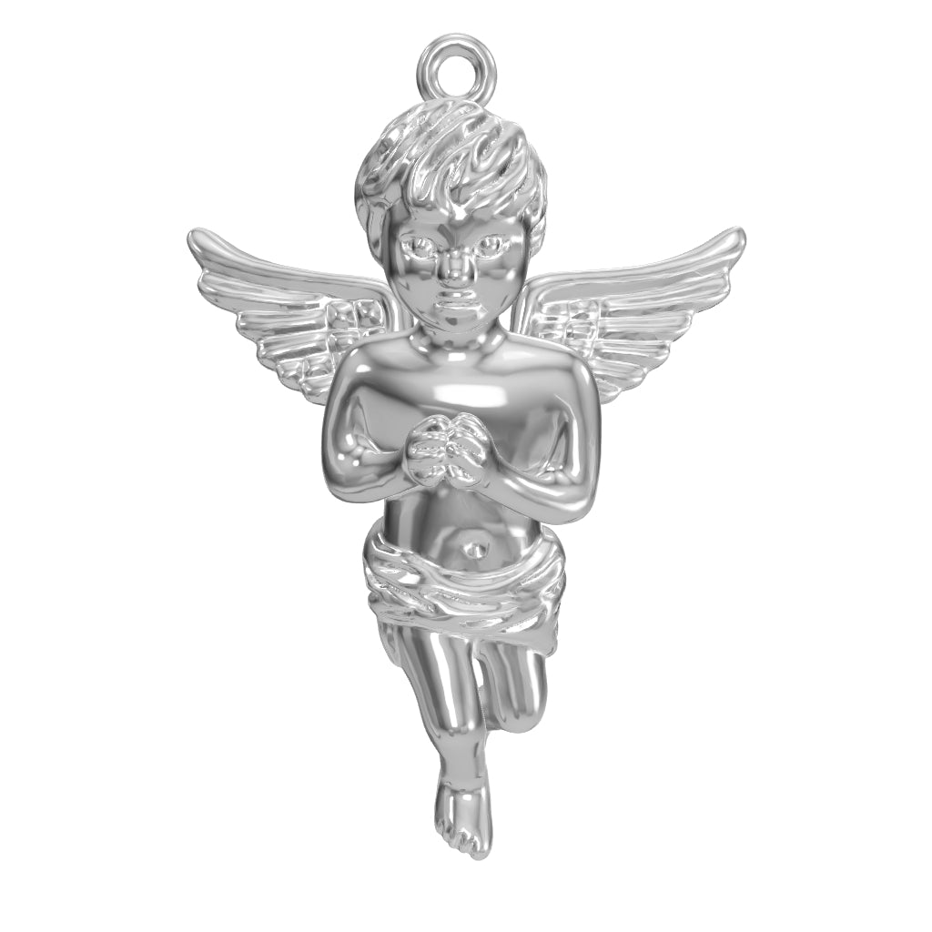 Micro Angel Piece Necklace Pendant & Franco Chain White Gold