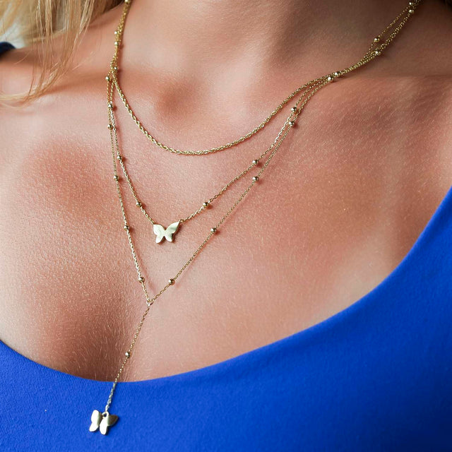 Women's Vermeil Double Gold Layered Butterflys Necklace Pendant