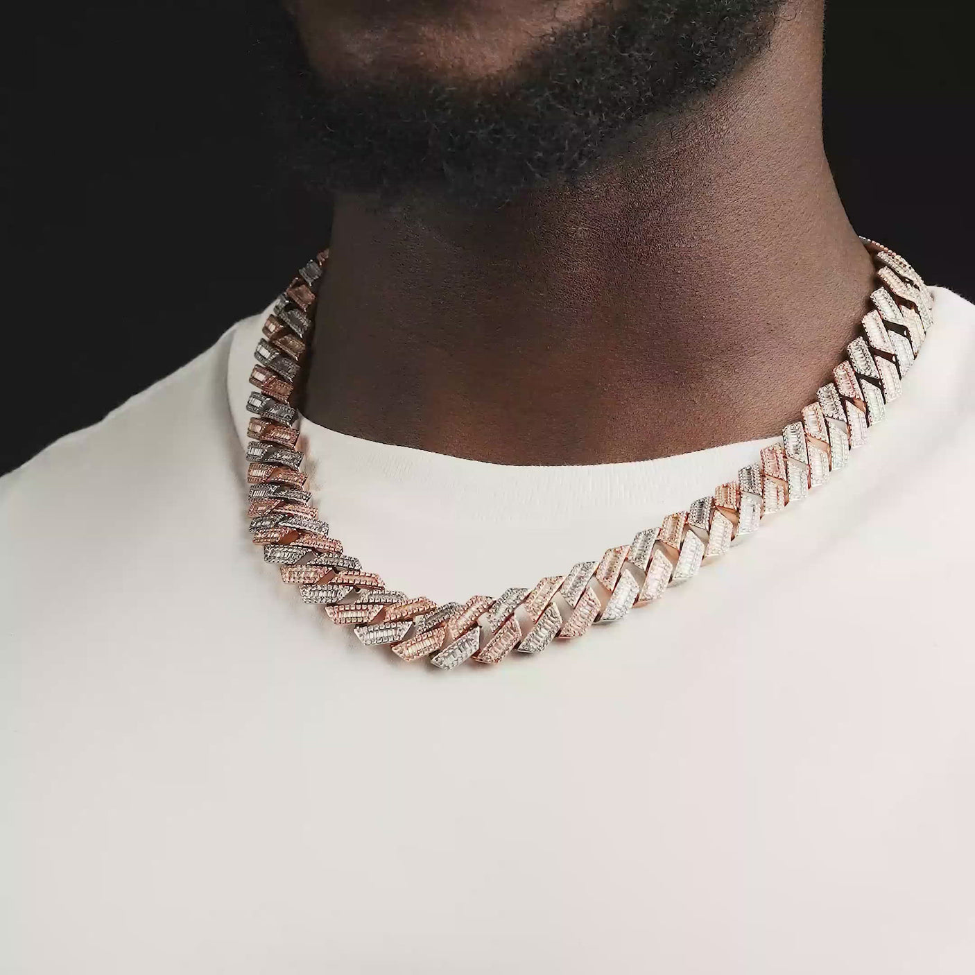 Style: Diamond Baguette Straight Edge Cuban Chain 18mm
