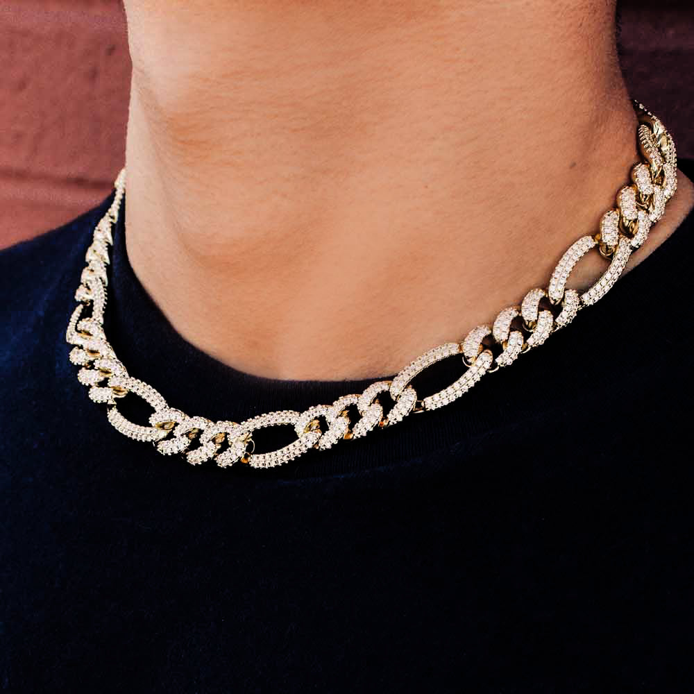 Diamond Figaro Chain - 18k Gold Plated / 18" / 15mm is backordered and will ship as soon as it is back in stock.