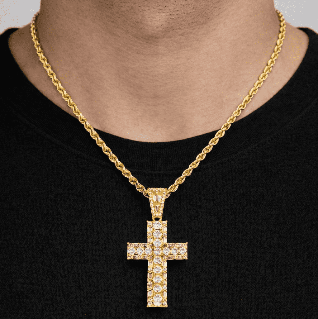 Style: Emerald Cross Necklace Pendant & Rope Chain