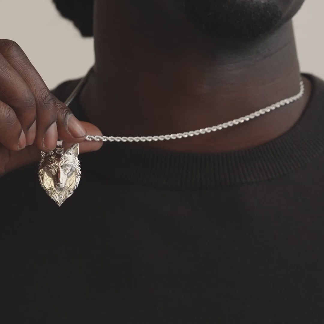 Style: Tribal Wolf Necklace Pendant & Rope Chain