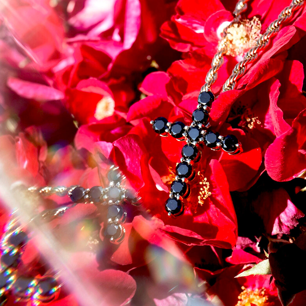 Style: Women's Micro Onyx Cross Necklace Pendant & Rope Chain